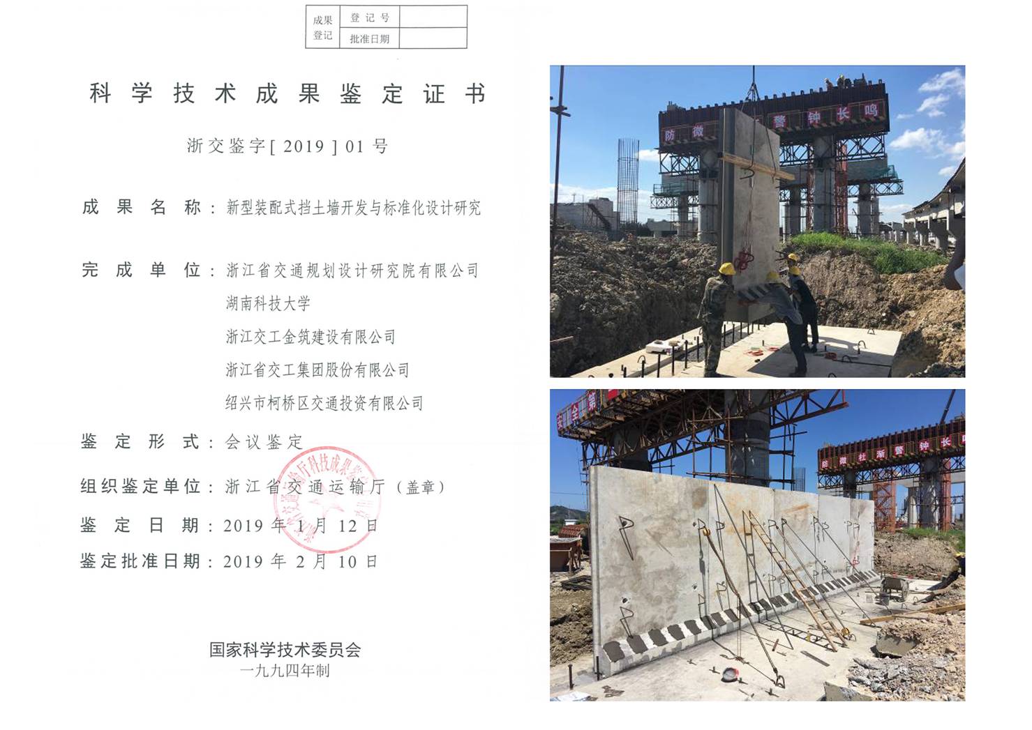 《新型裝配式擋土墻開發(fā)與標(biāo)準(zhǔn)化設(shè)計研究》課題通過省交通運輸廳鑒定